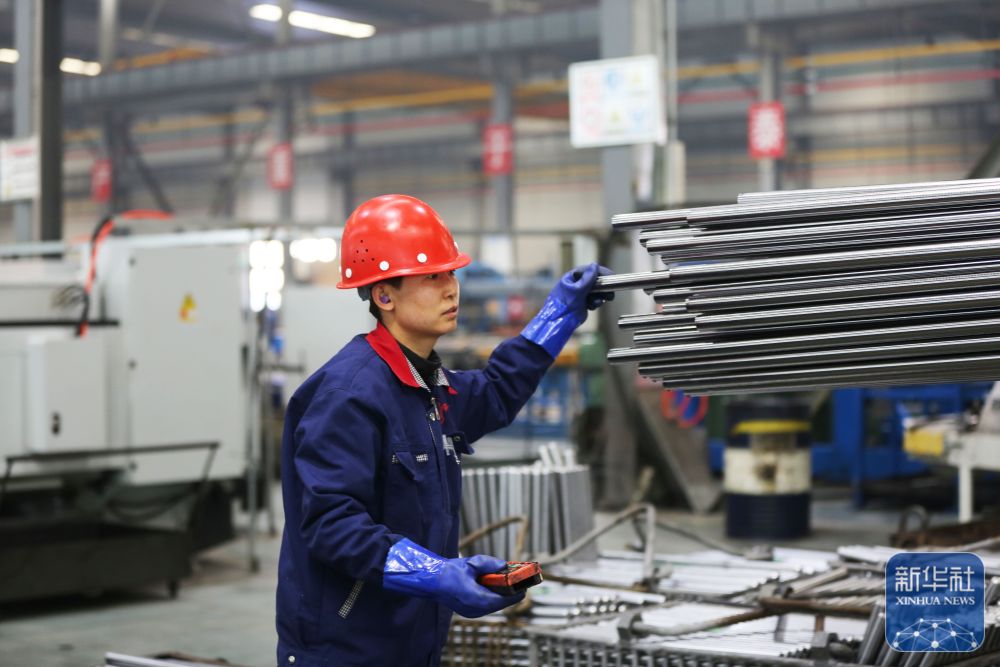 ↑ 2月24日,在山东省烟台市芝罘区只楚街道一家制冷设备和换热装置制造企业,工人在生产线上忙碌。新华社发(孙文潭摄)